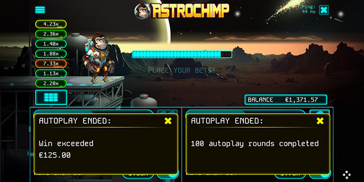 Boasting an impressive 97% RTP, Astrochimp brings you fast-paced excitement with plenty of rewards as you test your luck in orbit. Take advantage of Autoplay and Auto-Cashout options for hands-free action, while Multi-hand Play allows you to up the ante by placing two bets simultaneously.