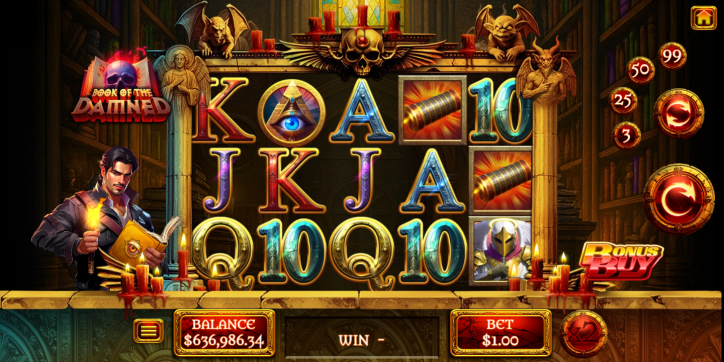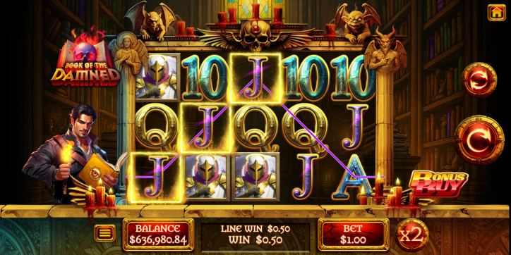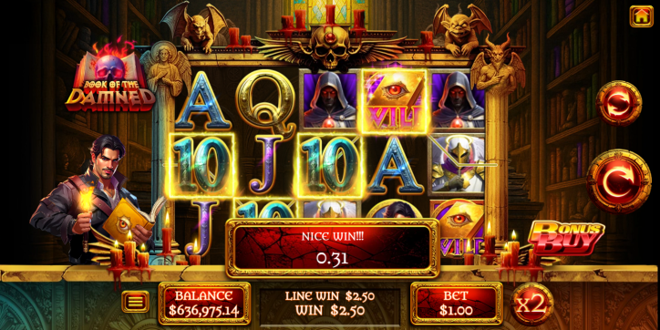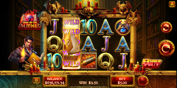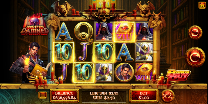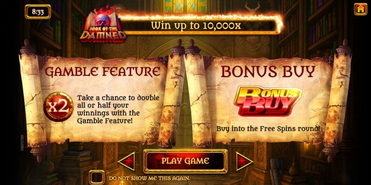 Spin the reels to reveal the Book of the Damned Wilds, which also act as scatters—landing three or more unleashes the Free Spins bonus and the fearsome Cursed Expanding Wild: a random symbol expands across the reels for the entire round, creating huge win potential. Feeling bold? Try the Gamble Feature to risk your winnings for a bigger payout, or skip straight to the thrills with the Bonus Buy, jumping right into Free Spins with Cursed Expanding Wilds.