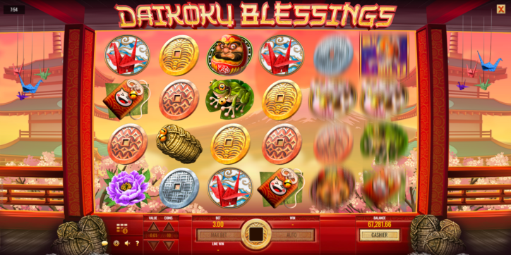 Welcome to historical Japan and the Temple of Daikoku, the god of wealth and prosperity. Daikoku Blessings is an exciting and colorful new SIX reel FOUR row slot with 4,096 WIN LINES!